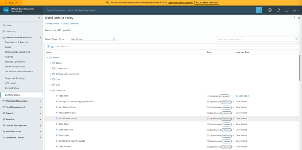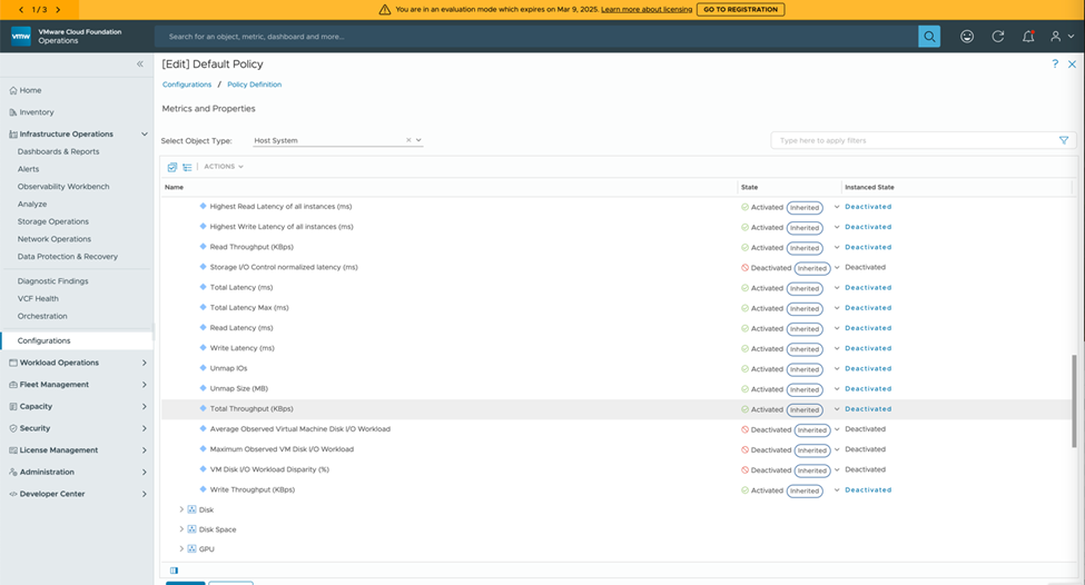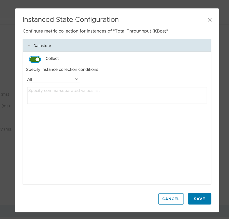 For example, to Activate the Instanced State for Host System à Datastore à Total Throughput
