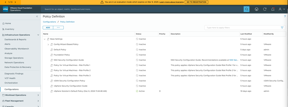 4. Navigate to Infrastructure Operations à Configurations à Policy Definitions tile