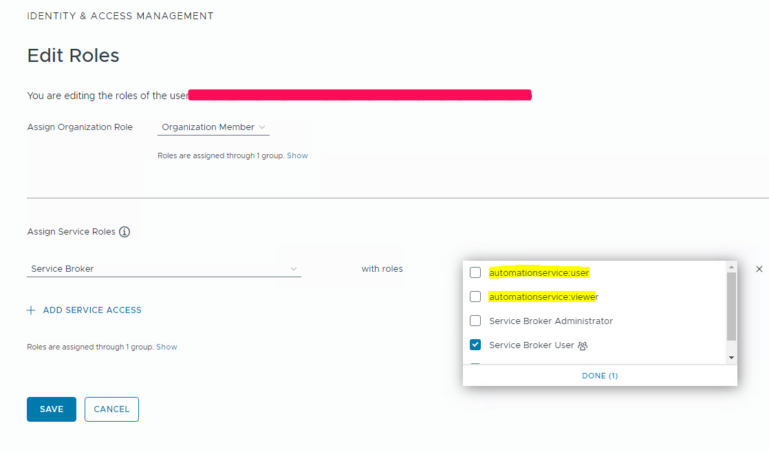 if user Injected the new service roles by mistake or wanted to remove service role(highlighted in screenshot) from Aria Automation Identity and Access Management.