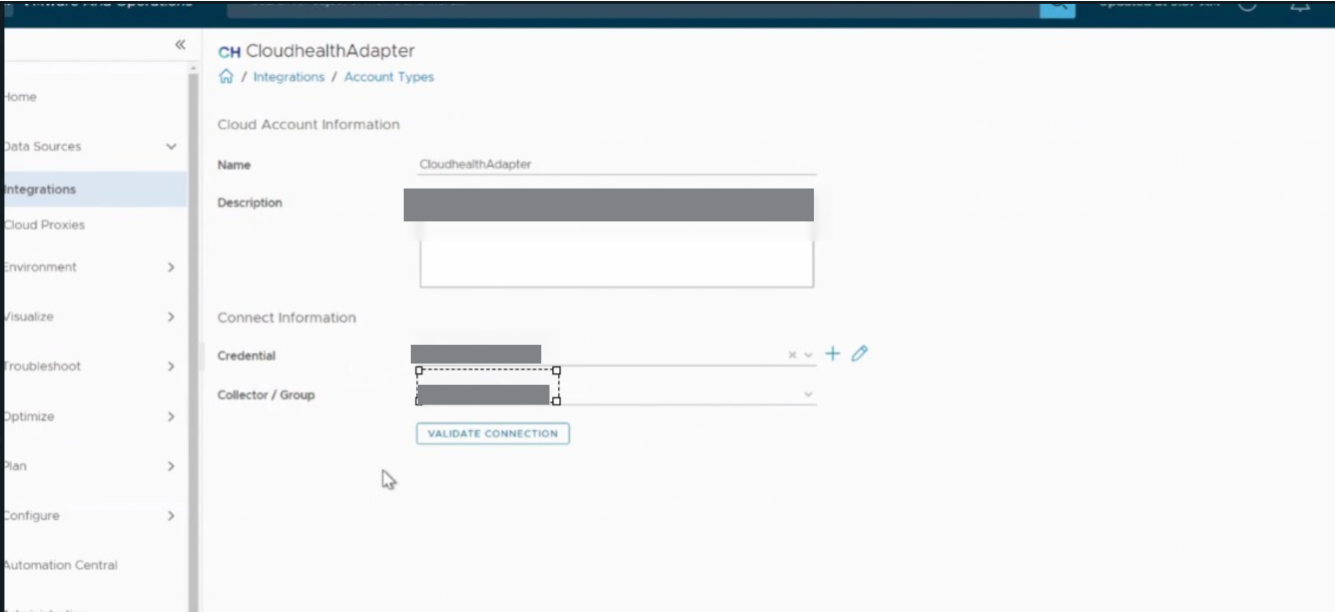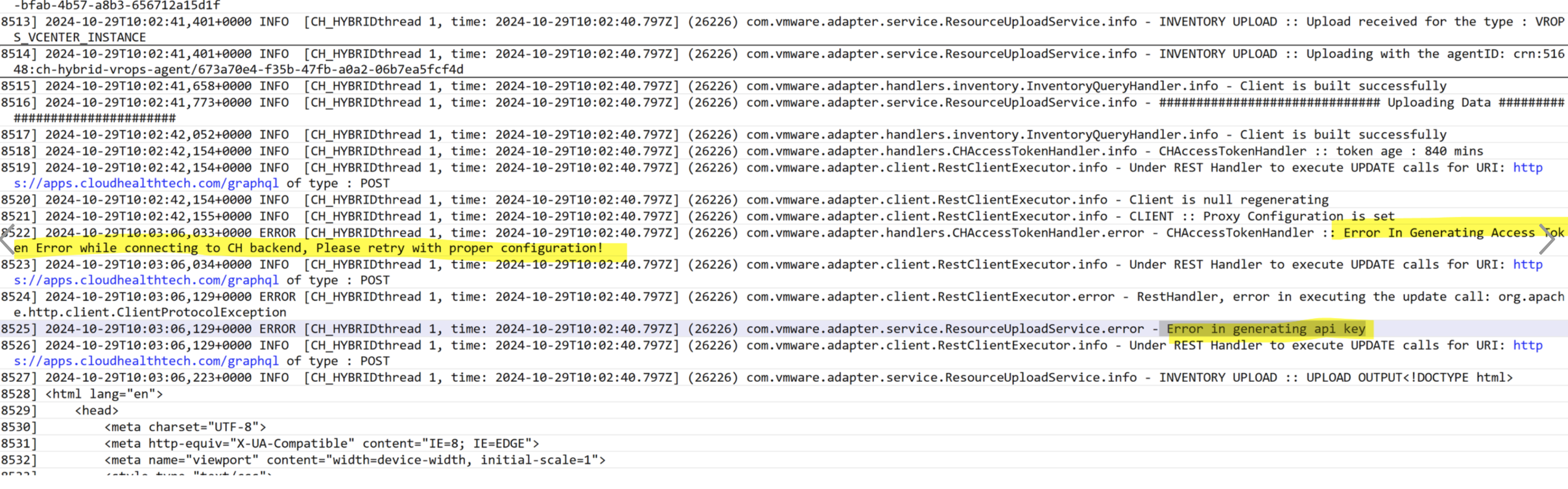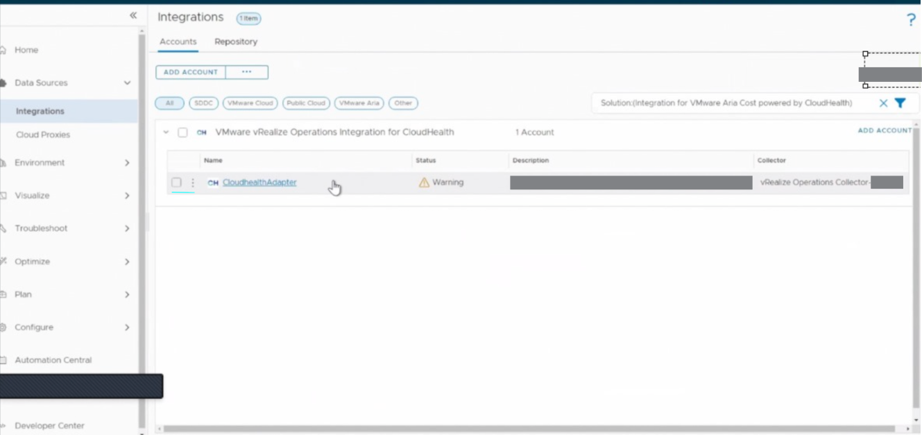 If you do not see new adapter logs getting generated validate the status of CloudhealthAdapter under integrations and check if it is in warning status.