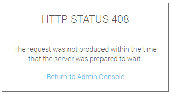HTTP STATUS 408 The request was not produced within the time that the server was prepared to wait. Return to Admin Console