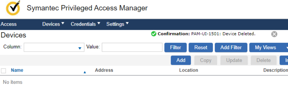 A PAM device administrator has rights to create, update and delete devices that are members of the device group that the administrator is assigned to. The admin created a device successfully and then deleted it. The PAM UI reported that the device was deleted and it disappears from view for this admin: