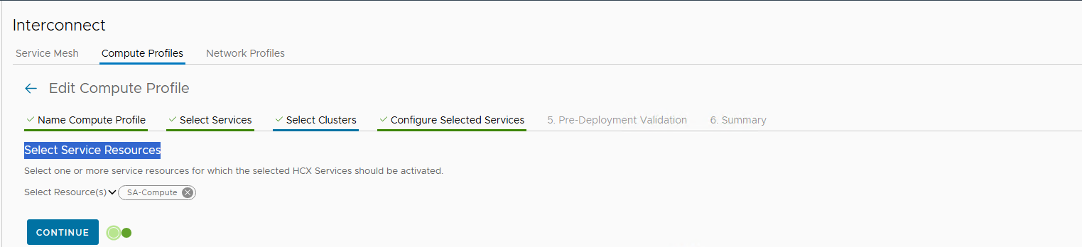 Edit the required Compute Profile, select the cluster that this VM is residing in to enable the selected VMware HCX services for that cluster.