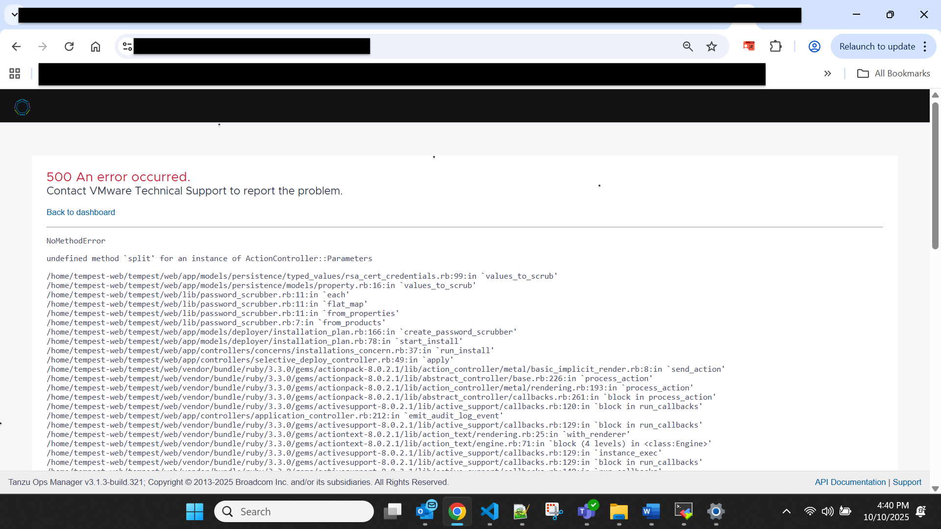 This issue can be caused by a property value from a staged product (tile) submitted via the API with an incorrect format. The bad value causes the property to error out as it can't be consumed.