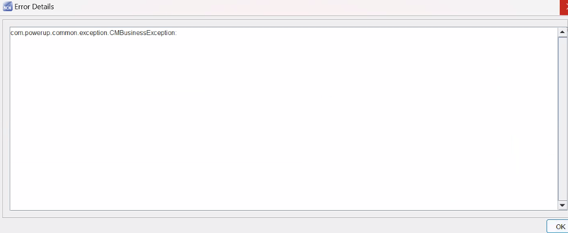 The error is the result of a mismatch in NCM versions between what version of NCM is installed on the AS and/or DS, and what version is installed as the NCM UI (the GUI installed locally for accessing the AS or DS).