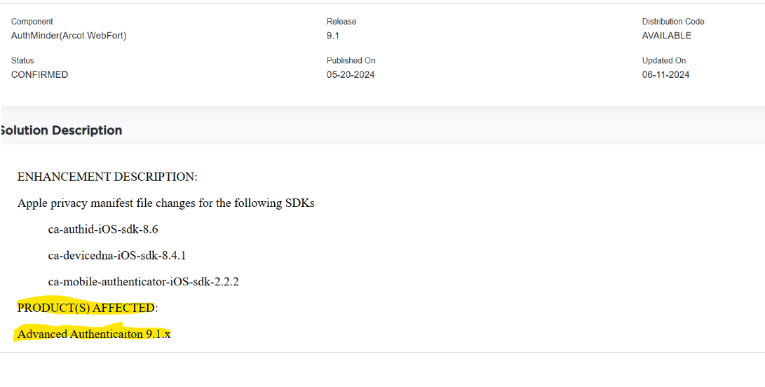 Version ca-mobile-authenticator-ios-sdk-2.2.2 meets the compatibility matrix with 9.1. X (where X can sp1, sp2, sp3, sp4 and sp5).