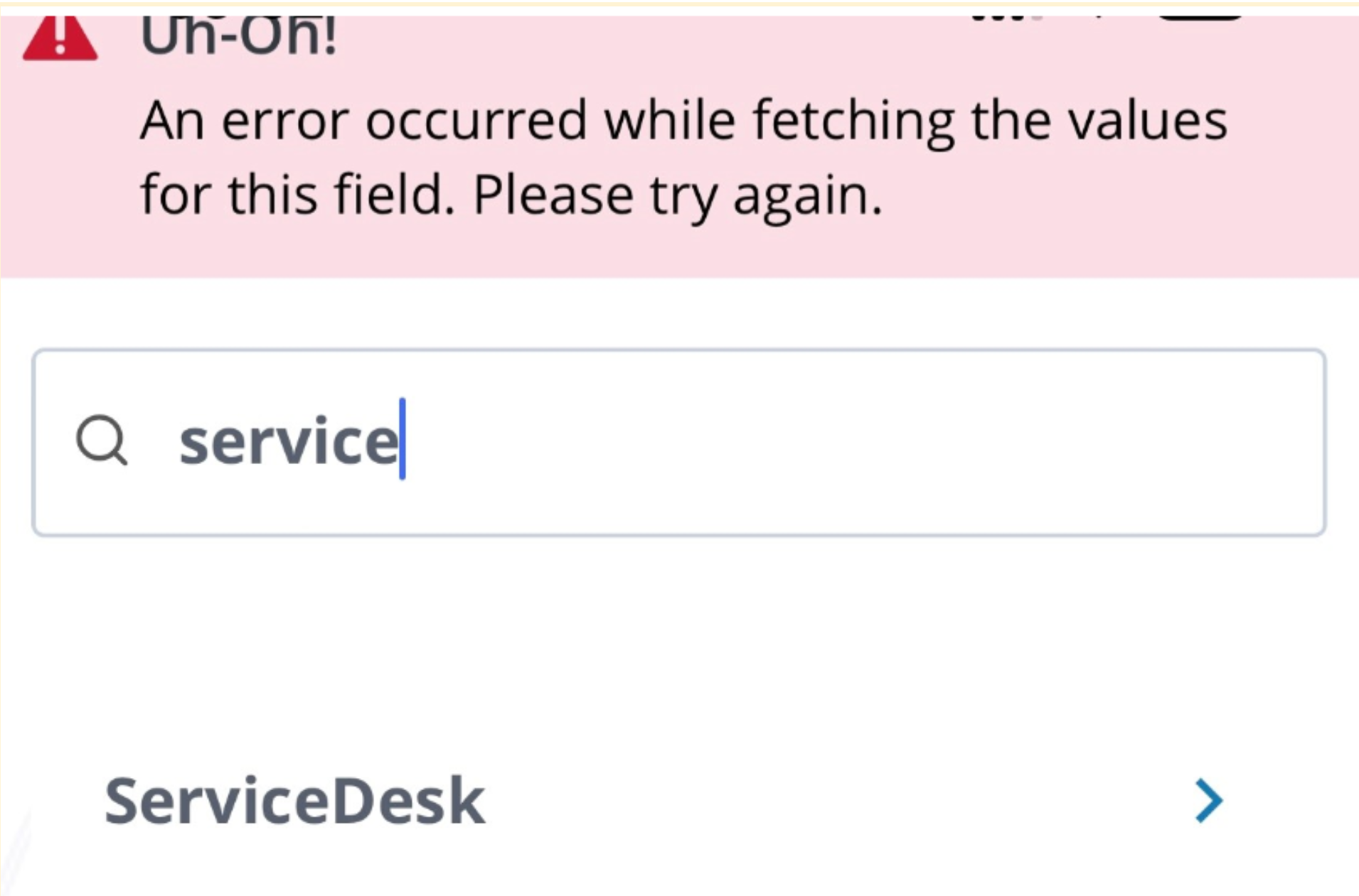 In CA Service Point mobile app while searching getting error "Uh-oh An error has occurred while fetching the values for this field. Please try again.