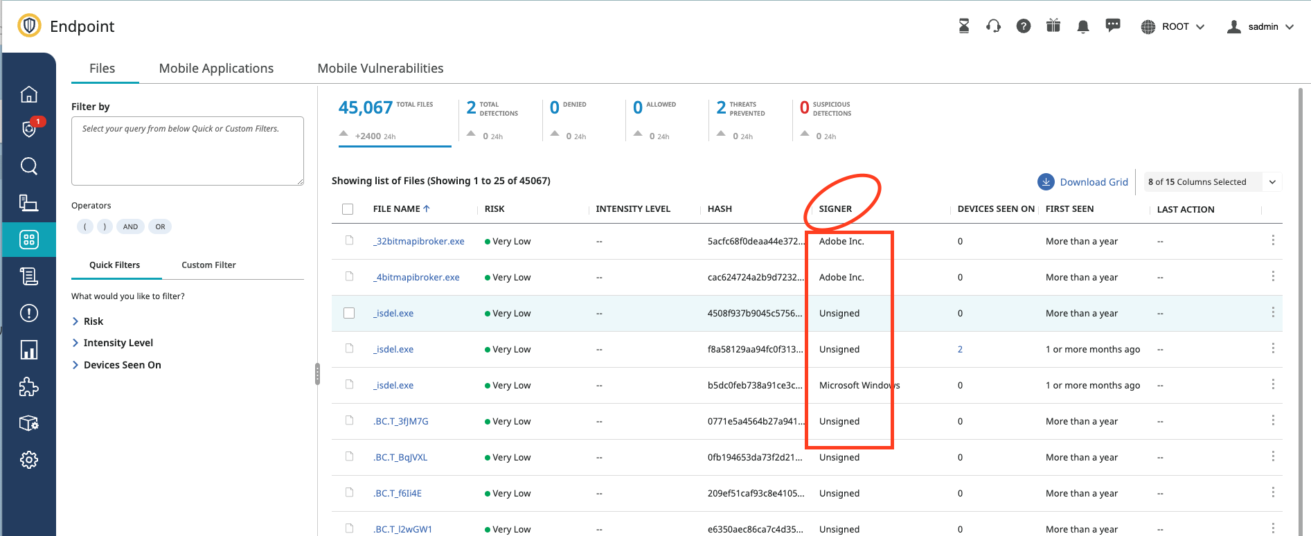 The Files signed by self signed certificates would show the CN of the certificate in the Signer field on the UI.