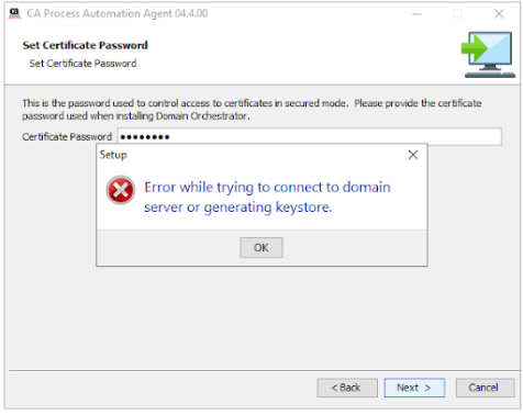 When installing the ITPAM Agent (using SSL), the following error appears: