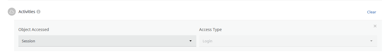 Note that the Activities section of the policy is not available when "Any" option is selected in the Cloud Service condition, or if more than one service is configured with the "Selective" option.