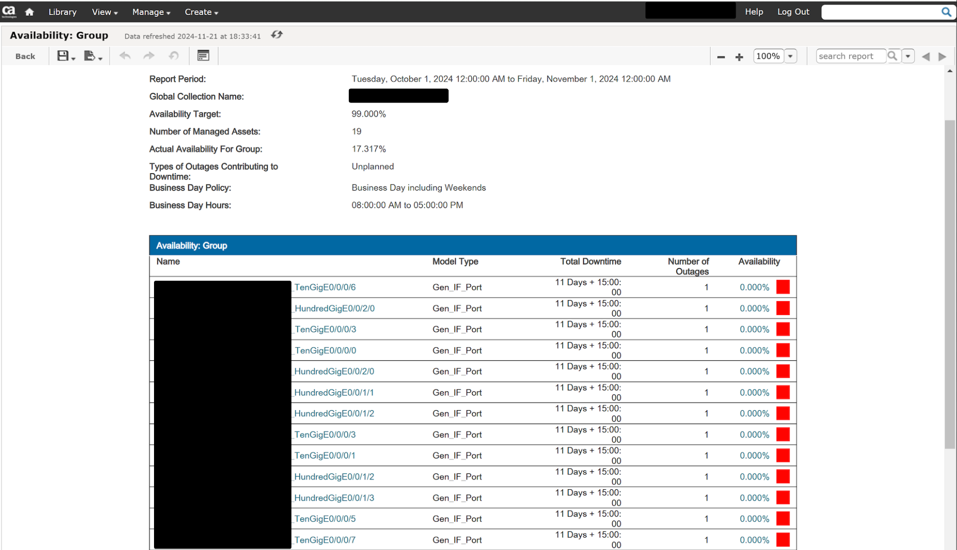 Availability Report showing 100% outage, even though interfaces had recovered and are UP: