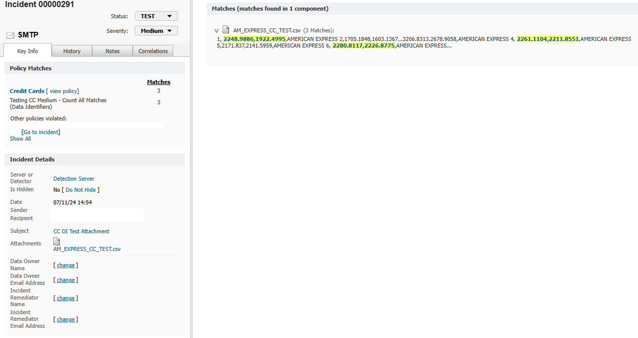 The system-defined Data Identifier "Credit Card Number" is returning false positives where 4 digits full stop 4 digits comma 4 digits full stop 4 digits is being picked up by the following pattern:
