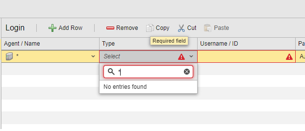 Unable to use *Asterisk on the Type column within LOGIN Objects in V24