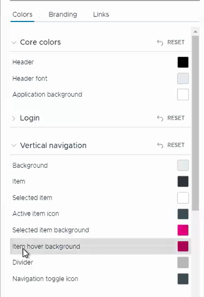 Inconsistent color application for 'Selected item' and 'Selected item background' while customizing VMware Cloud Director portal using Branding API