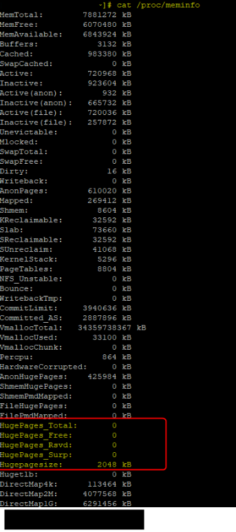 Huge Pages can be seen by querying /proc/meminfo