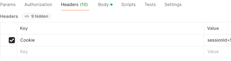 4. Add Header "Cookie" with the Value "sessionId=<value from step 2>".