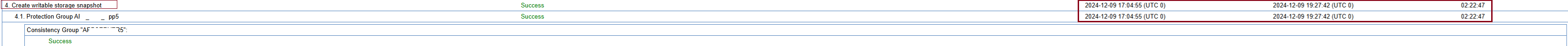 --> [RMSRA20][Th# D## 1# 00:14:43 2024]: [testfailover] : Commence: SnapShot Copy [ lunkey=2308, dev_group=AP######R2] is being created for testFailoverStart request on array [ 320581 ].--> [RMSRA20][Th# D## 1# 00:14:43 2024]: [testfailover] : SnapShot Volume [ SnapShot_Lunwwn=600##########################904 ] is being split and exposed via '/usr/bin/pairsplit -IH -rw -dg 320581 2308 1 1>/dev/null' on 'SnapShot LDEV=2308, VOLST=S-VOL, STAT=PAIR, COPYMD=-'.--> [RMSRA20][Th# D## 1# 00:15:05 2024]: [testfailover] : Complete : SnapShot Copy [ lunkey=2308, dev_group=AP######R2] has been created and presented for testFailoverStart request on array [ 320581 ].--> [RMSRA20][Th# D## 1# 00:15:05 2024]: [testfailover] : Commence: SnapShot Copy [ lunkey=2309, dev_group=AP######R2] is being created for testFailoverStart request on array [ 320581 ].--> [RMSRA20][TTh# D## 1# 00:15:05 2024]: [testfailover] : SnapShot Volume [ SnapShot_Lunwwn=600##########################905 ] will being split and exposed automatically as CT Group on 'SnapShot LDEV=2309, VOLST=S-VOL, STAT=PAIR, COPYMD=-'.--> [RMSRA20][Th# D## 1# 00:15:05 2024]: [testfailover] : Complete : SnapShot Copy [ lunkey=2309, dev_group=AP######R2] has been created and presented for testFailoverStart request on array [ 320581 ].--> [RMSRA20][Th# D## 1# 00:15:05 2024]: [testfailover] : Commence: SnapShot Copy [ lunkey=2310, dev_group=AP######R2] is being created for testFailoverStart request on array [ 320581 ].--> [RMSRA20][Th# D## 1# 00:15:05 2024]: [testfailover] : SnapShot Volume [ SnapShot_Lunwwn=600##########################906 ] will being split and exposed automatically as CT Group on 'SnapShot LDEV=2310, VOLST=S-VOL, STAT=PAIR, COPYMD=-'.--> [RMSRA20][Th# D## 1# 00:15:05 2024]: [testfailover] : Complete : SnapShot Copy [ lunkey=2310, dev_group=AP######R2] has been created and presented for testFailoverStart request on array [ 320581 ].--> [RMSRA20][Th# D## 1# 00:15:05 2024]: [testfailover] : Commence: SnapShot Copy [ lunkey=2311, dev_group=AP######R2] is being created for testFailoverStart request on array [ 320581 ].--> [RMSRA20][Th# D## 1# 00:15:05 2024]: [testfailover] : SnapShot Volume [ SnapShot_Lunwwn=600##########################907 ] will being split and exposed automatically as CT Group on 'SnapShot LDEV=2311, VOLST=S-VOL, STAT=PAIR, COPYMD=-'.--> [RMSRA20][Th# D## 1# 00:15:05 2024]: [testfailover] : Complete : SnapShot Copy [ lunkey=2311, dev_group=AP######R2] has been created and presented for testFailoverStart request on array [ 320581 ].--> [RMSRA20][Th# D## 1# 00:15:05 2024]: [exit_main] : returns with [0]
