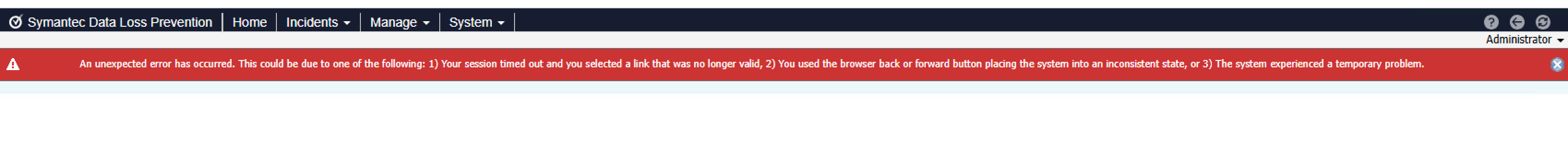 17 Dec 2024 14:13:14,105- Thread: 122 WARNING [com.vontu.manager.struts.transactions.BeginsAndCompletesTransactionProxy] Exception thrown by class com.vontu.manager.admin.endpoint.troubleshoot.action.TroubleshootAgentsAction.execute17 Dec 2024 14:13:14,105- Thread: 122 WARNING [com.vontu.manager.struts.transactions.BeginsAndCompletesTransactionProxy] Aborting transaction after method call failed [class com.vontu.manager.admin.endpoint.troubleshoot.action.TroubleshootAgentsAction.execute]17 Dec 2024 14:13:14,105- Thread: 122 FINE [com.vontu.model.Model] model.transaction.abort.success: https-jsse-nio-443-exec-517 Dec 2024 14:13:14,105- Thread: 122 SEVERE [com.vontu.manager] [/AgentTroubleshooting] Unexpected error occurred while processing action17 Dec 2024 14:13:14,105- Thread: 122 SEVERE [com.vontu.manager] [/AgentTroubleshooting] Cause:java.lang.NullPointerExceptionjava.lang.NullPointerException at com.vontu.util.software.Version.parseVersion(Version.java:55) at com.vontu.util.software.Version.<init>(Version.java:44) at com.vontu.manager.admin.endpoint.troubleshoot.action.TroubleshootAgentsAction.checkAgentVersions(TroubleshootAgentsAction.java:345) at com.vontu.manager.admin.endpoint.troubleshoot.action.TroubleshootAgentsAction.execute(TroubleshootAgentsAction.java:168)