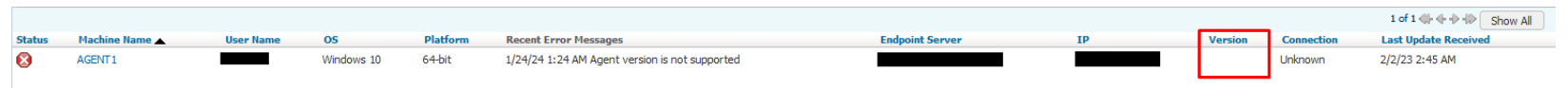 Any agents not reporting a version are most likely unable to connect to the Endpoint Prevent Server or are using an unsupported version.
