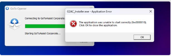 11/18/2024 17:00:01 | 31292 | WARNING | CodeInjection.POMClient | Process Initialization is still in progress, Retry Count:1 for ProcessId:8576, Process Name:C:\Program Files (x86)\LogMeIn\GoToAssist Corporate\1408\GoToAssist_Corporate_HelpAlert.exe. | C:\VontuDev\workDir\GeneralHooks\ProcessOperationMonitor\Src\POMHook.cpp(484)