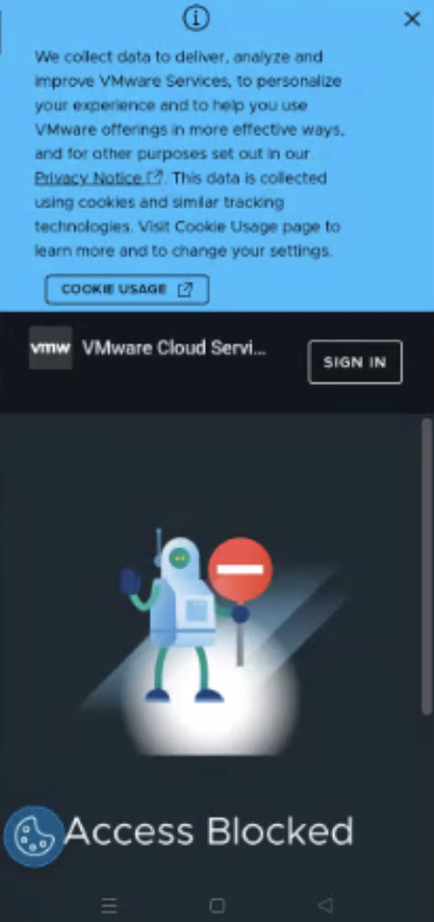 5) After that if one will try to access the Tanzu SaaS service from IP which is restricted then TCSP will block that user to access the portal and will show page as below.