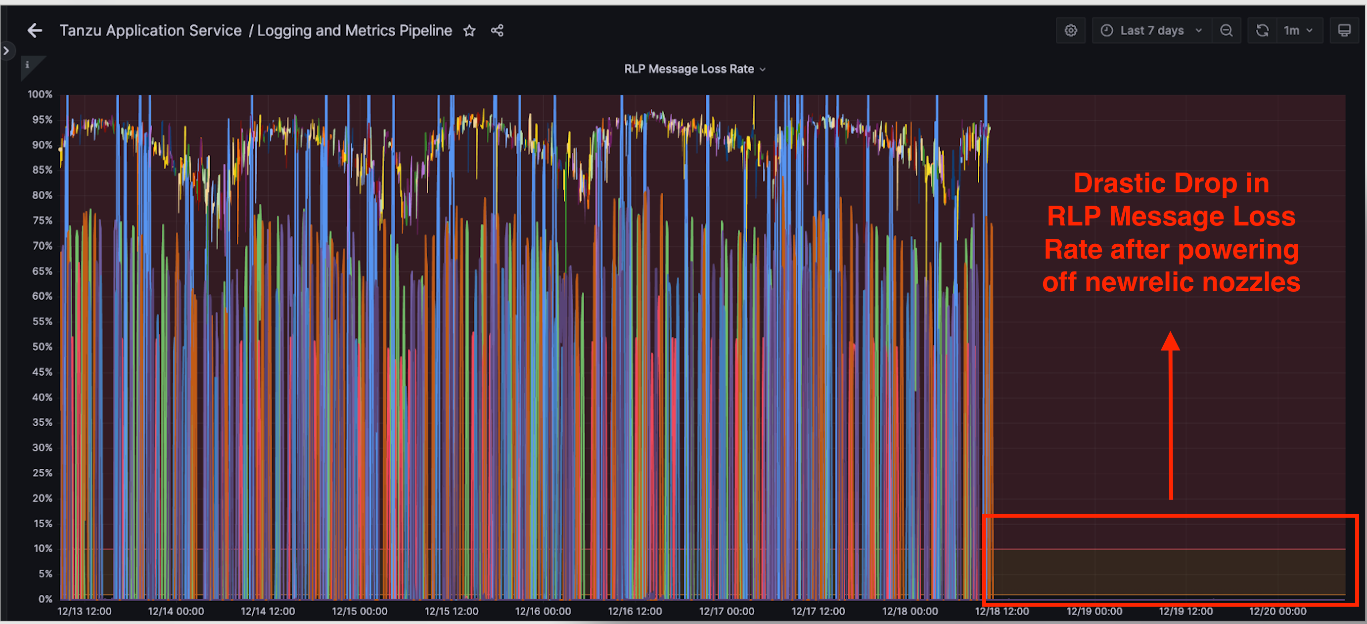 Doppler.stderr.log (from the Doppler VM) where the ShardID indicate the nozzle where the drops are originating from. Based on the log output below, the drops are occurring in the new relic nozzles and the FirehosePlugin:2024-11-26T15:18:43.511264556Z Dropped 2000 envelopes (v1 buffer) ShardID: FirehosePlugin2024-11-26T15:18:44.067754158Z Dropped 1000 envelopes (v1 buffer) ShardID: FirehosePlugin2024-11-26T15:18:45.312025078Z Dropped 3000 envelopes (v1 buffer) ShardID: FirehosePlugin2024-11-26T15:18:46.511093603Z Dropped 2000 envelopes (v1 buffer) ShardID: FirehosePlugin2024-11-26T15:18:47.280569372Z Dropped 2000 envelopes (v1 buffer) ShardID: FirehosePlugin2024-11-26T15:18:48.697958693Z Dropped 4000 envelopes (v1 buffer) ShardID: FirehosePlugin2024-11-26T15:18:48.934935543Z Dropped 1000 envelopes (v1 buffer) ShardID: FirehosePlugin2024-11-26T15:18:49.799814328Z Dropped 1000 envelopes (v1 buffer) ShardID: FirehosePlugin2024-11-26T15:18:50.671530452Z Dropped 3000 envelopes (v1 buffer) ShardID: FirehosePlugin2024-11-26T15:18:51.259809542Z Dropped 1000 envelopes (v1 buffer) ShardID: FirehosePlugin2024-11-26T15:18:52.120642192Z Dropped 2000 envelopes (v1 buffer) ShardID: FirehosePlugin2024-11-26T15:18:53.053222981Z Dropped 2000 envelopes (v1 buffer) ShardID: FirehosePlugin2024-11-26T15:18:54.686482713Z Dropped 4000 envelopes (v1 buffer) ShardID: FirehosePlugin2024-11-26T15:18:55.818981168Z Dropped 3000 envelopes (v1 buffer) ShardID: FirehosePlugin2024-11-26T15:18:56.392525947Z Dropped 2000 envelopes (v1 buffer) ShardID: FirehosePlugin2024-11-26T15:18:57.017061080Z Dropped 2000 envelopes (v1 buffer) ShardID: FirehosePlugin2024-12-03T16:21:45.694002017Z Dropped 2000 envelopes (v2 buffer) ShardID: newrelic.firehose