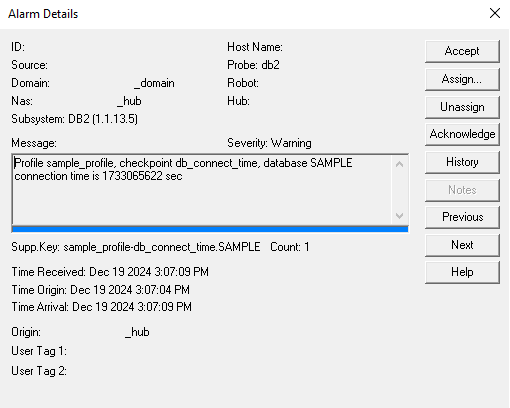 db2 probe alarms erroneously on db_connect_time with unix timestamp