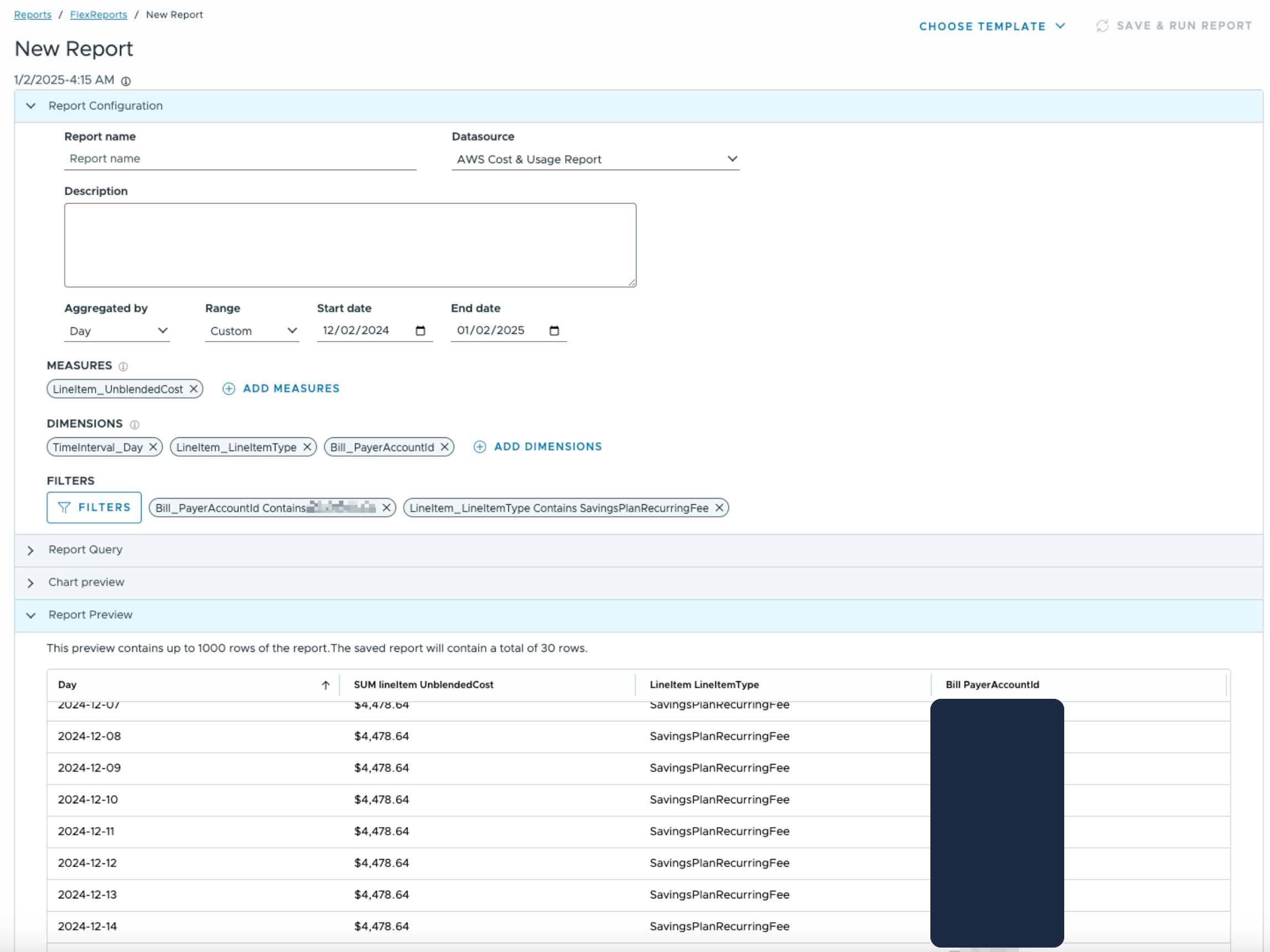 You can confirm if this is the case by using a FlexReport and bringing in the RI/SP Recurring Fee line item. Also utilize the Payer Account ID and look to see if the recurring fee is continuing beyond the date which the payer account changed. In this example, the account moved on Dec 10, but we can see that the fee for the old payer account continues beyond the move date.