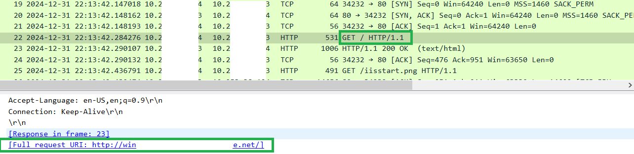 But the native browser does not have this information. It is launched with a request to connect to the local IP and port configured in the TCP/UDP service. The PAM client routes this connection correctly to the web service on the target device, but the URI in the HTTP request once the connection is established is http://<local IP>:<local Port>. Depending on whether or not IIS is listening on local IPs, this may go to a default page, or it may result in a 404 Not Found error, as seen in the screenshot below: