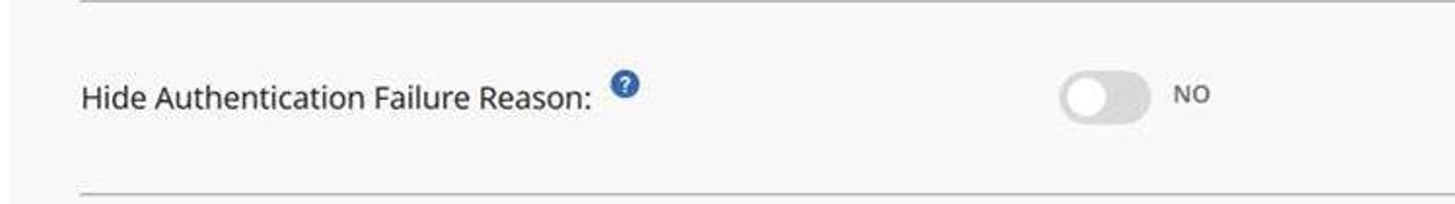 Hide Authentication Failure Reason: Toggle this option to disclose or hide the complete error message when an invalid user/locked user tries to start the authentication flow.