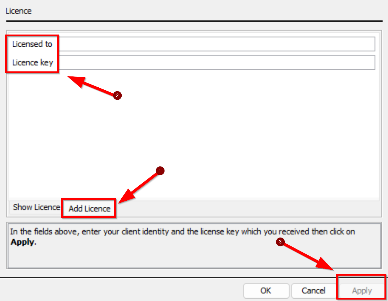 11. Click the Add License tab and complete the Licensed to and License key fields.