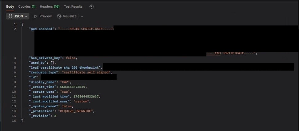Running API Command: GET /api/v1/cluster/nodes/<certificate-id>