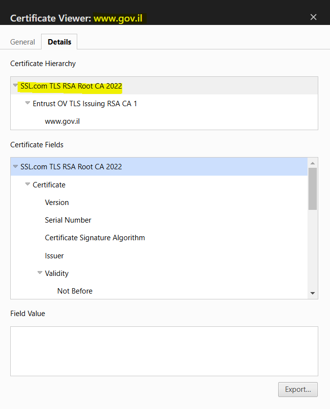 CA certificate used to sign gov.il certificate is not trusted by Web Isolation.