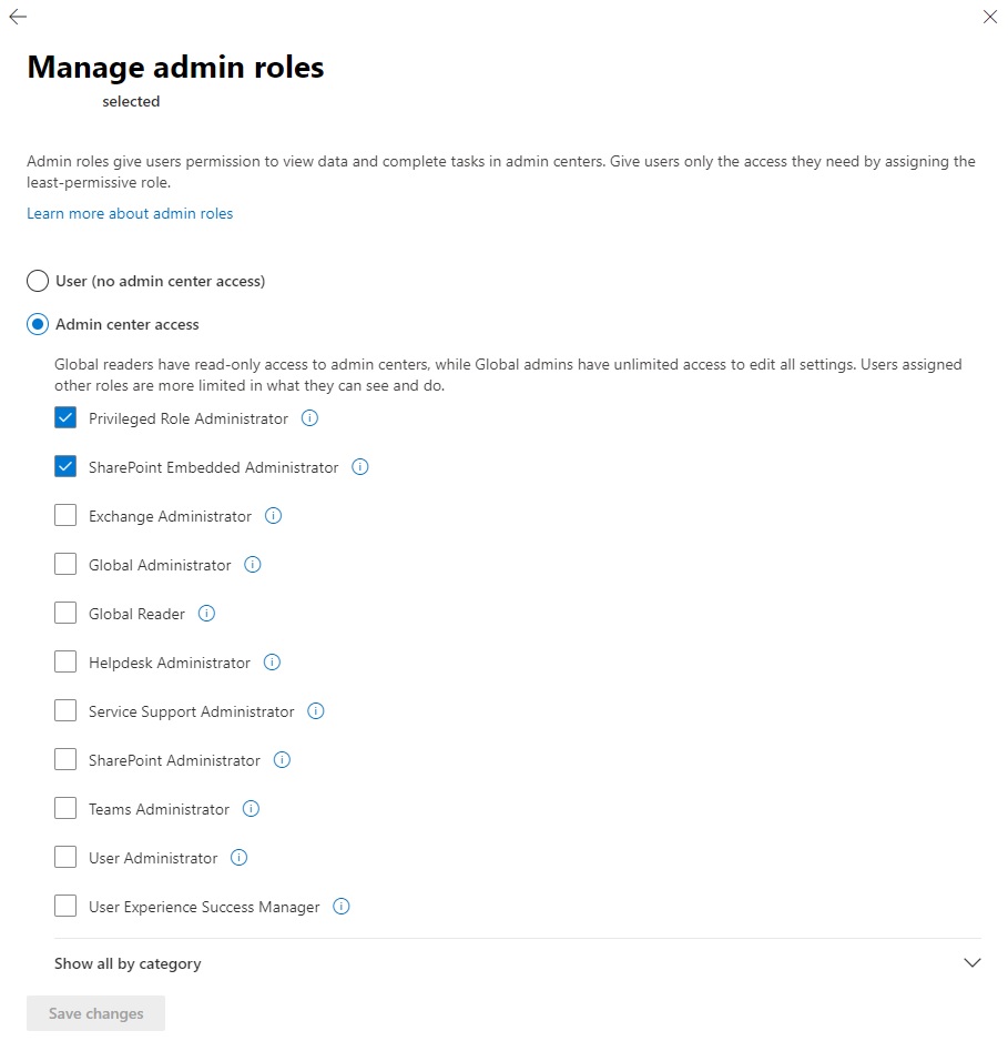 You can use the “Privileged Role Administrator” and the “SharePoint Embedded Administrator” roles instead of the "Global Administrator" role when activating the Securlet.