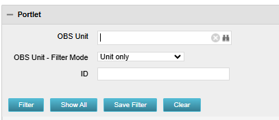 A portlet is created from a custom object. There is no association to an OBS Unit but the List Filter section has OBS Unit in the layout.