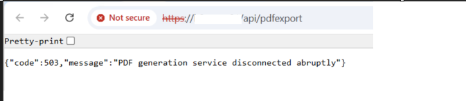 "code":503,"message":"PDF generation service disconnected abruptly"