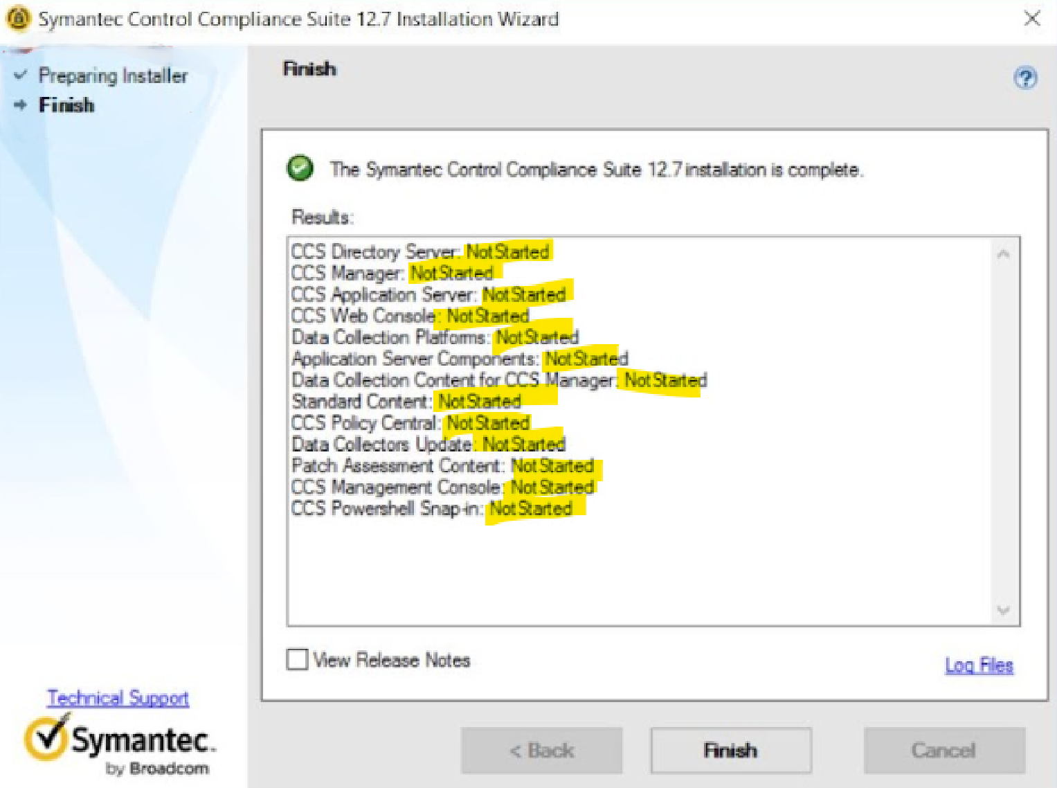 CCS upgrade from 12.6.1 to 12.7 did not started, result shows as Not Started.