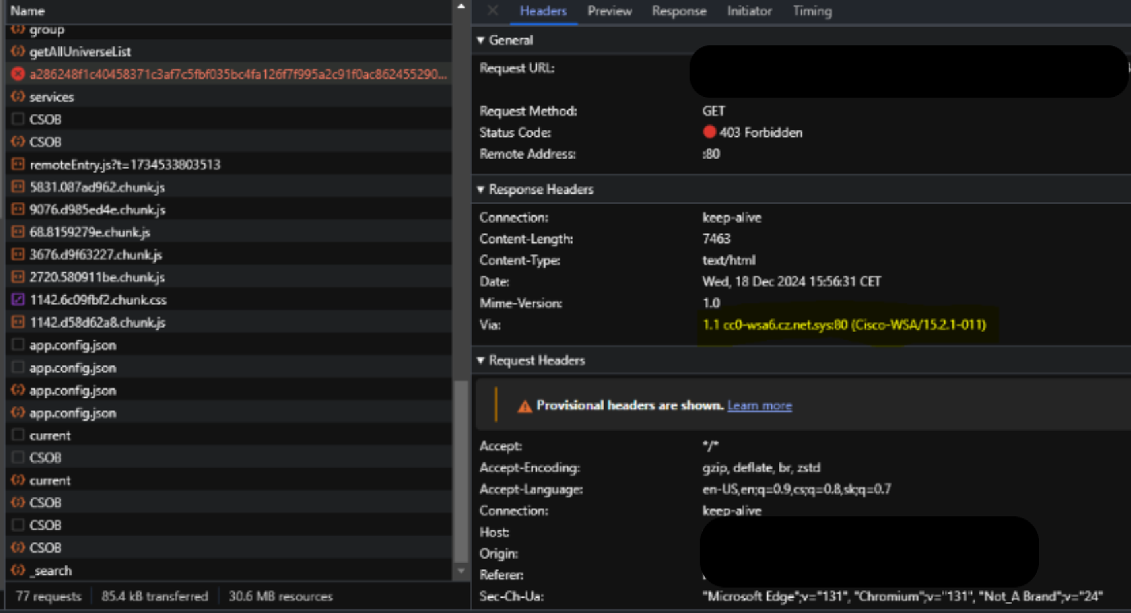 Used the browser's Dev Tools to gather the session and found this error accessing :