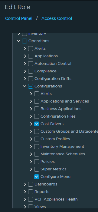 The following Role configuration is the minimum requirement and will provide the Least Privileged User to view and edit Cost Drivers: