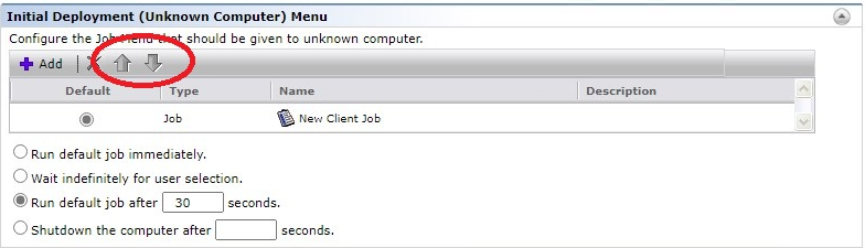 When multiple jobs and/or tasks are configured for Initial Deployment, administrators may need or prefer to rearrange the order in which they are presented in the menu