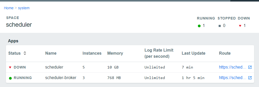 Although the scheduler-broker is running, check if there might be errors/logs that would provide clues. In this case we can see a mysql error as well. Scheduler-broker and Scheduler apps work hand in hand so one app will affect another app's behaviour.