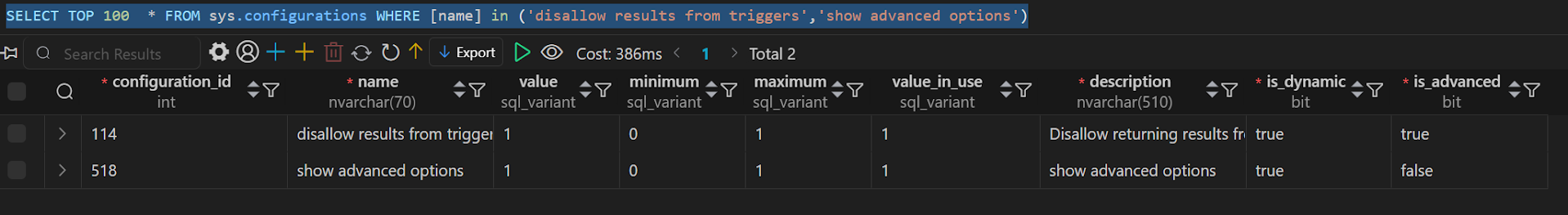 If AAI is not used or as a workaround if the DBA confirms 'disallow results from triggers' is on (the column value_in _use must be set to 1):