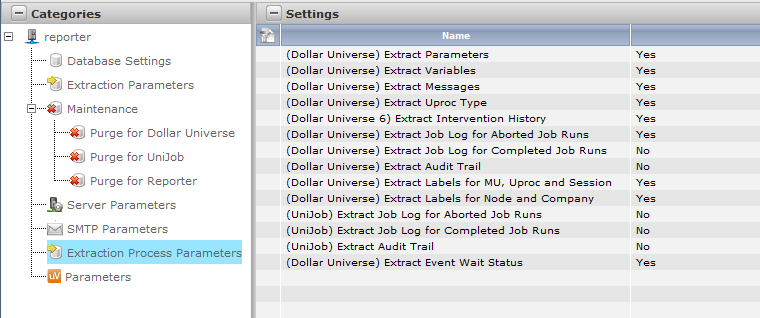 Reporter Server 6.10.121 where the following Extraction Process Parameteres are set: