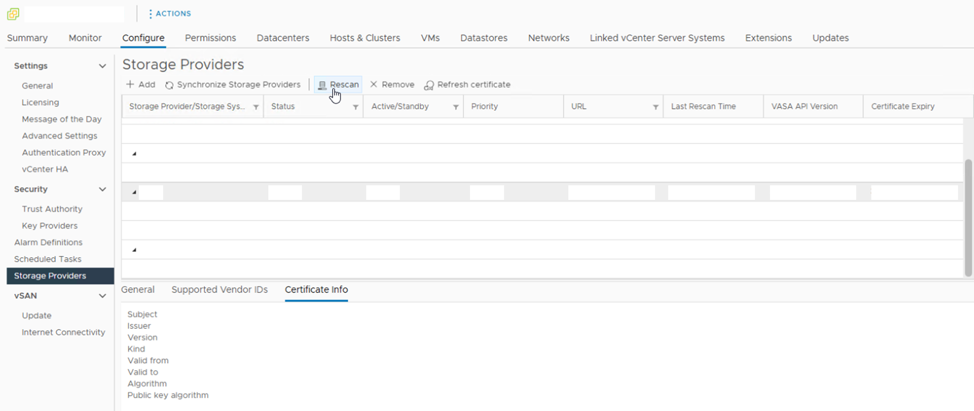vSphere Client shows old VASA provider certificate after restarting vmware-sps service
