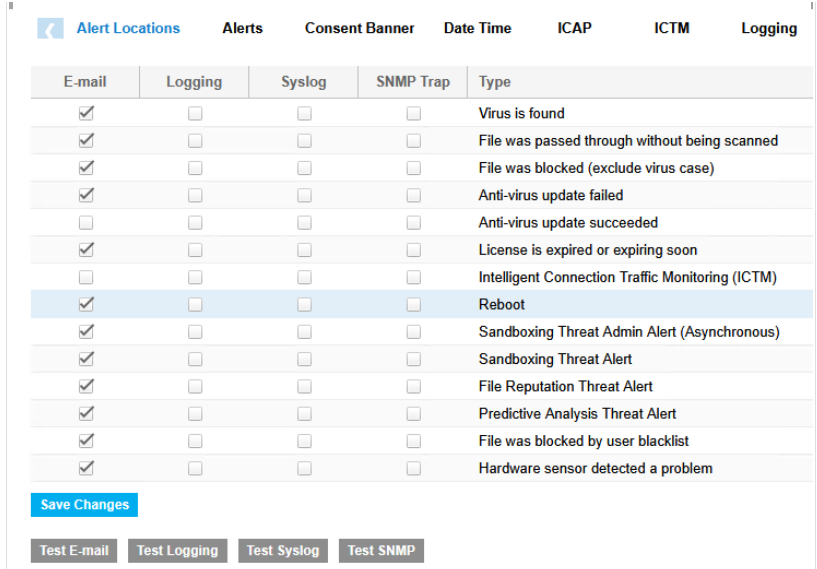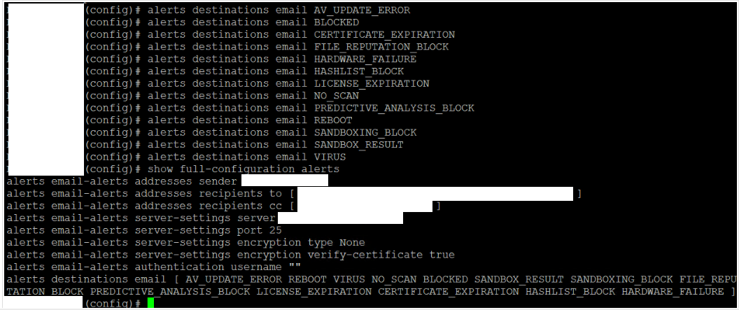 Unable to set the Alert Locations from the GUI of the CAS appliance, as the settings are missing. See the snippet below, as reference. This is happening specifically with CAS ver. 3.2.1.1.