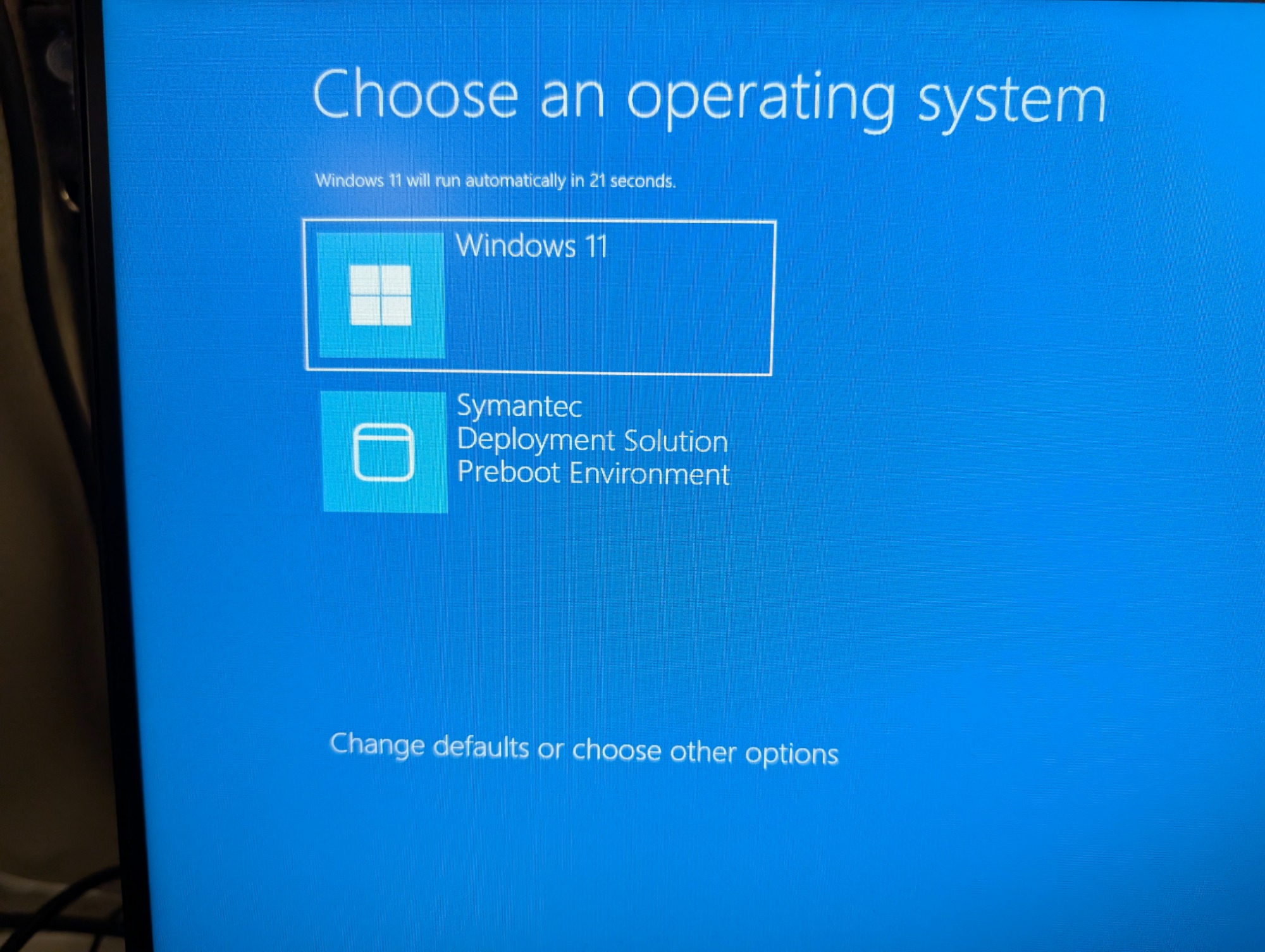 After deploying the Automation Folder to an endpoint the Windows Boot Manager is showing which Operating System to boot to which is causing end user confusion as seen here: