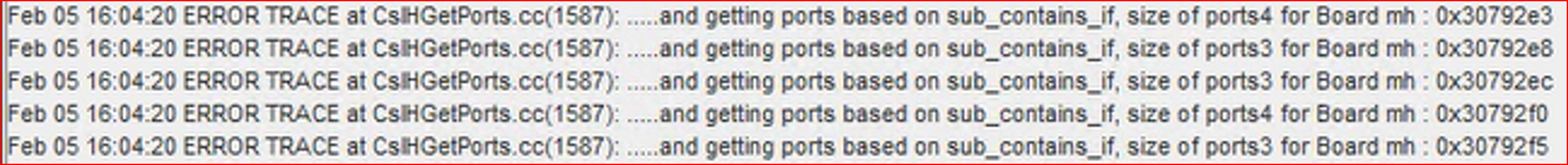 ERROR TRACE AT CsIHGetPorts.cc(1587): ....and getting ports based on sub_contains_if, size of ports3 for Board mh: <model_handle>