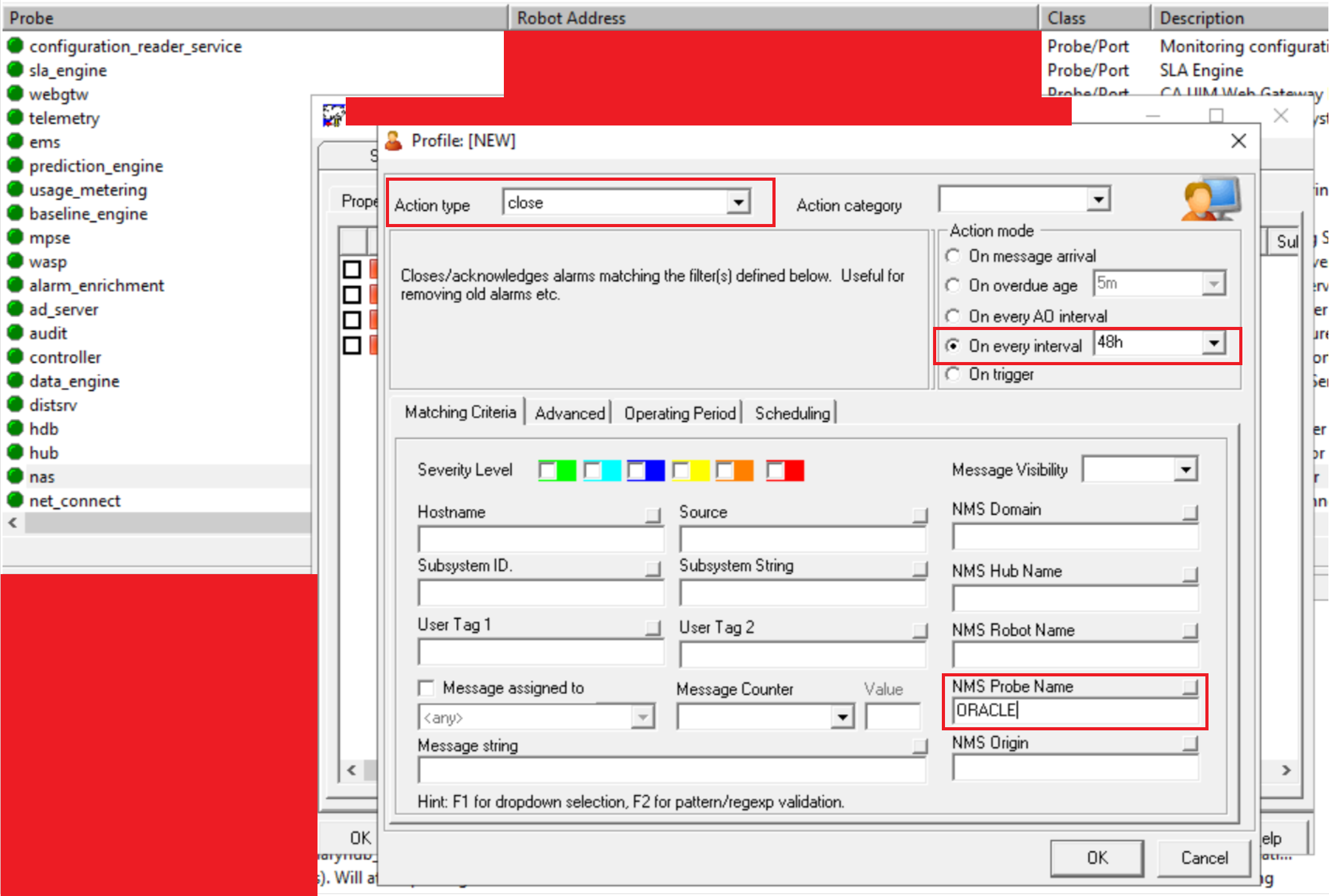 There might be a need to close some specific probes alert based on some interval - this goal can be achieved by creating Auto Operator profile in the NAS configuration.