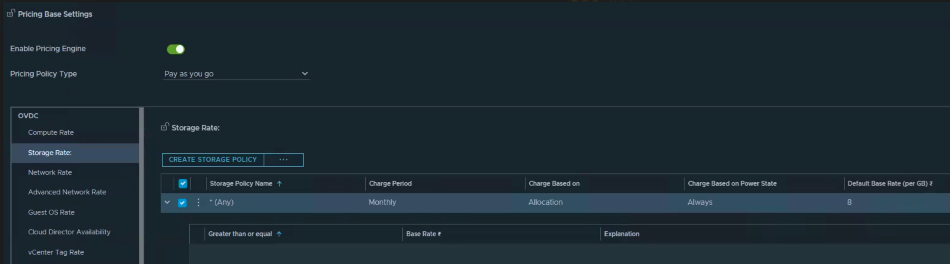 - Storage Base rate : Rs 8 per GB