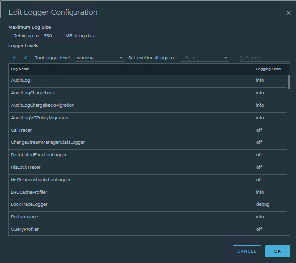 Setting a class to debug on Aria Operations in Administration > Control Panel > Support Logs: